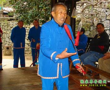 三棒鼓,唐代稱三仗鼓,明沈行符《顧曲雜言》 曰:“吳下何來有打三棒鼓乞錢者,余幼時有見之也, 起于唐咸通中(公元865年)”約于明代傳入本境, 并逐漸成為群眾增聞樂見的民間藝術(shù)形式。每年春節(jié) ,藝人們結(jié)伴走村竄寨拜年,表演對象不分貧富,戶 戶必到。如遇貧寒之家,表演者將別家贈送禮品相送 ,意在人人過節(jié)歡喜。充分體現(xiàn)出土家族人熱情好客 ,心地善良的民族性格,對加強(qiáng)民族團(tuán)結(jié)有一定作用 。 三棒鼓通常由三至五人組成,一人擊鼓唱詞,一 人鑼鈸配樂,一人?;ò??;ò羧?,長一尺,舞者 左右手各持一根,將另一根拋在空中,左右開弓,擊 打空中花棒使之不落地。也有以刀代棒,以五刀代三 棒的技藝。技藝高強(qiáng)者,突然把刀拋得極高,來一個 眼花繚亂,不禁稱絕。打三棒鼓,通常有“鬧春耕” 、“收割打場”、“慶豐收”、“拜年節(jié)”四套,分 “鯉魚跳龍門”、“玉女穿梭”、“板巖漂灘”等項 目。打三棒鼓技巧性強(qiáng),表演時需高度集中,用力適 當(dāng),貫通一氣,并與演唱者默默配合。