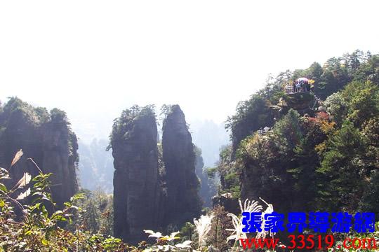 (山頂環(huán)覽線:五指峰、前花園、黑樅垴)朋友們!這里的每一座巖峰都是一件古老的藝術品,每一座巖峰都隱藏著大自然的無窮奧秘。面對如此壯美雄奇、氣象萬千的砂巖峰林風光,幾年前,一位來自東北的女作家,就站在黃石寨(黃獅寨)上感嘆道:看了張家界的風光,覺得真可以死了。接下來她又說,看了張家界的風光,覺得更有理由好好活了。兩句話看起來前后矛盾,其實不然:前一句是說能見一到像張家界這樣奇美的風光,此生足矣;后一句是說人生是如此美好,理應更加珍愛生命。大家說對不對? “人生不到張家界,百歲何能叫老翁。”