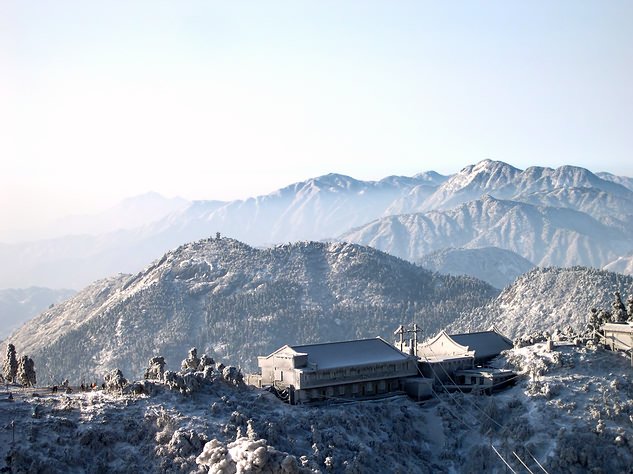 衡山四時景色各極其勝,初春可玩味繁花,盛夏可觀看云海,金秋可遠眺日出,冬日可欣賞雪景。