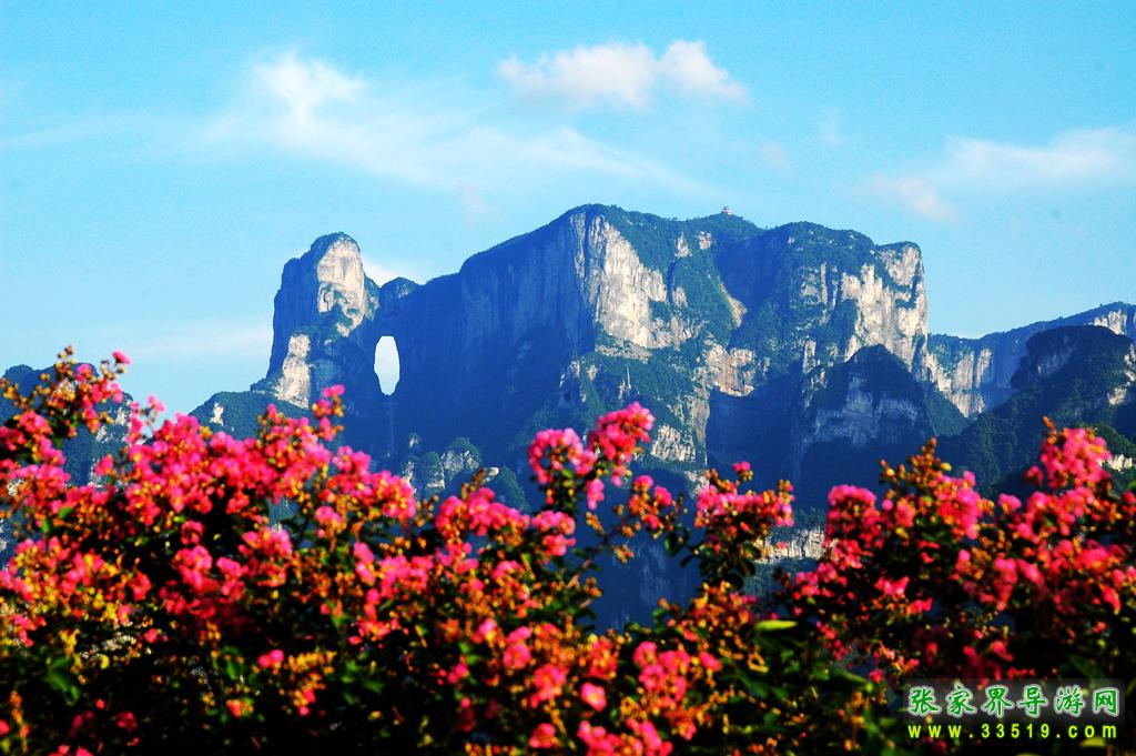 天門洞位于天門山山體的中上部,是世界上最高海拔的天然穿山溶洞,海拔1300米 ,其高131.5米,寬57米 ,深60米。它南北對開于千尋素壁之上,扶搖而通天,似明鏡似天門鑲嵌于蔚蔚天幕之上,終年吞云吐霧,蔚為壯觀中更加神秘莫測。“天門洞開云氣通,江東峨眉皆下風”元朝的著名詩人張兌曾這樣贊嘆,磅礴的氣勢由此可見。1700多年來,這一道奇絕天下的勝景吸引著無數(shù)的探訪者趨之若騖。特別是在1999年,世界特技飛行大師架機穿越天門洞,在全球引發(fā)了轟動效應,收看現(xiàn)場直播的觀眾達到8億之多。