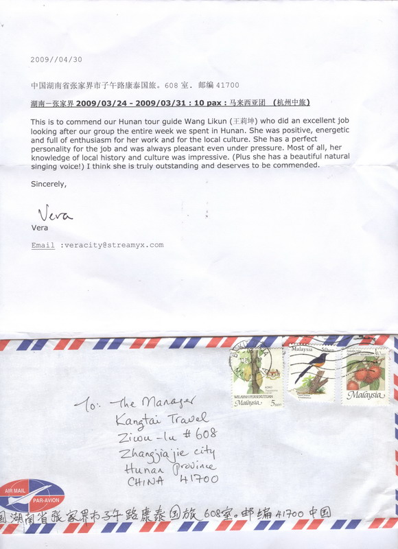 - 游客夏先生為表揚導(dǎo)游李姣姣寫來表揚信致我張家界... [14811]