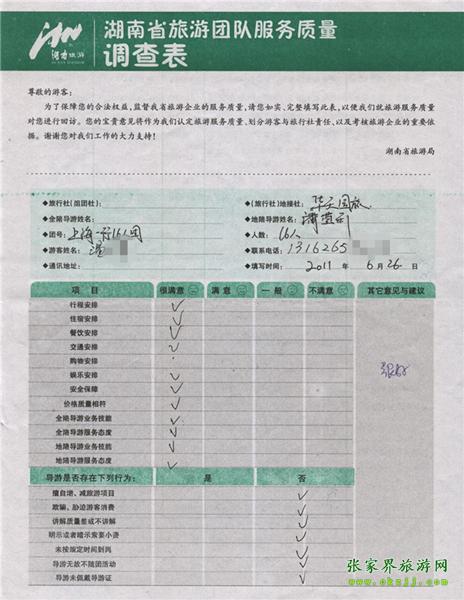 2011年6月26日溫先生一行16人旅游質(zhì)量反饋:很好