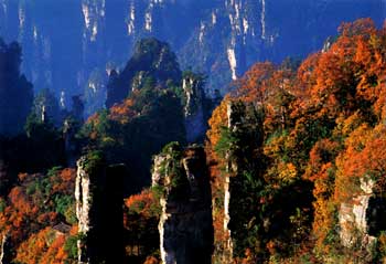 森林覆蓋率達(dá)97.7%的張家界,無(wú)愧于中國(guó)第一個(gè)國(guó)家森林公園的稱號(hào)。其植物種類比整個(gè)歐洲擁有的樹(shù)木種類多一倍以上。珍貴樹(shù)種包括屬國(guó)家一級(jí)保護(hù)的珙桐(外國(guó)人又叫“中國(guó)的鴿子花”)和屬國(guó)家二級(jí)、三級(jí)保護(hù)的鐘萼木、銀杏、香果樹(shù)以及鵝掌楸、香葉楠、杜仲、金錢柳、貓兒屎(第三紀(jì)殘遺樹(shù)種)、銀鵲、南方紅豆杉等,是個(gè)實(shí)實(shí)在在的森林寶庫(kù)。 冬天走在這樣的森林寶庫(kù)里,滿眼的綠帶給你的卻是春天般的溫暖。精靈奇巧的霧凇千姿百態(tài),笨拙憨厚的灌木清純天成……踏著片片落葉,遙望遠(yuǎn)峰勁綠,深呼吸一口初冬微涼的空氣,春、秋、冬三季在這一刻蒙太奇般地拼在了一起,夢(mèng)幻般的感覺(jué)縈繞不去。 好山好水不冬眠
