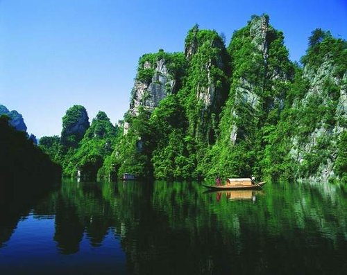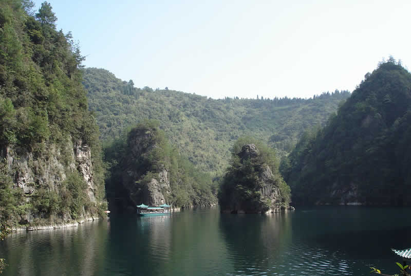 其位于武陵源區(qū)城南1.5公里處,是武陵源風(fēng)景名勝中的精品景點(diǎn)。它是一座罕見(jiàn)的高峽平湖,四面青山,一泓碧水,風(fēng)光旖旎,是山水風(fēng)景杰作。在此蕩舟,還可見(jiàn)到湖心島上“玉瓶開(kāi)花”、“十女梳妝”、“金龜戲水”、“青蛙鬧春”等佳景。 寶峰湖是一個(gè)截流筑壩而成 的人工湖,深72米,長(zhǎng)2.5米公里, 以其秀麗的湖光 水色與幽野的洞天情趣成為武陵源水景風(fēng)光的代表之 作。湖中有兩座疊翠小島,近岸奇峰屹立,峰回水轉(zhuǎn)。